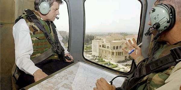 Paul Bremer, the American Administrator for Iraq, flies over Mosul with General Patraeus: May 2003