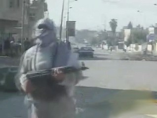Insurgents Running through the Streets. Road Block in the Background: Nov 12 2004