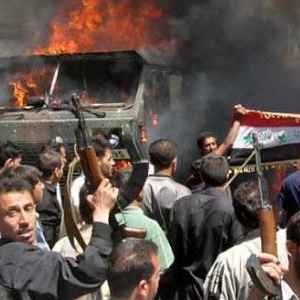 Fallujians Celebrate as a Truck From a US Convoy Burns